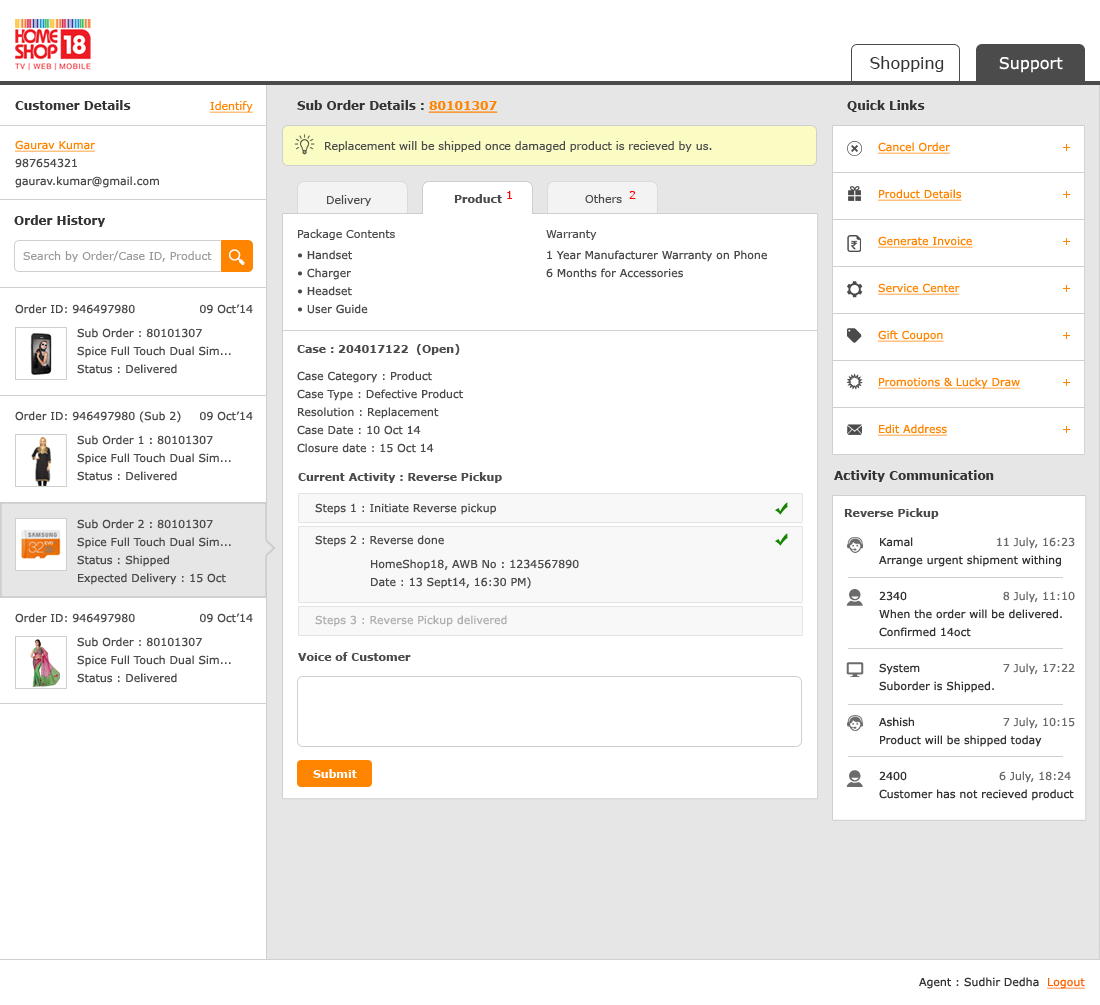 The challenge was to do a single screen design which is specific to customer needs and easy for the customer service agent to resolve issues in quick and efficient way.